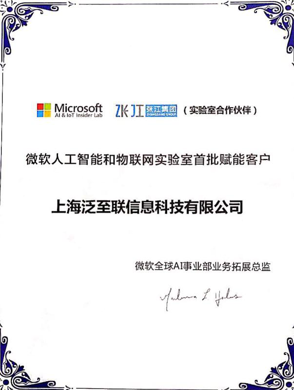 泛联科技通过微软的严格考核,成功入选微软人工智能和物联网实验室的合作赋能企业